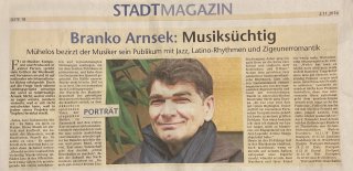 Heute ist der 57-Jährige fest in der Musikszene etabliert, doch manchmal, wenn er abends auf seinem Balkon entspannt eine Zigarre raucht, wünscht er sich, dass Musikern und ihrer Kunst ein wenig mehr Wertschätzung entgegengebracht würde. „Weder hat man es leicht, noch wird man reich in dem Business. Umgekehrt muss man gut vernetzt sein, ständig Präsenz zeigen und neue, unverbrauchte Projekte anbieten.“ Letzteres zumindest dürfte kein Problem darstellen, denn was interessante Ideen anbelangt, geht dem musiksüchtigen Arnsek noch lange nicht die Puste aus: „Vielleicht mache ich mal ein Live-Projekt mit ganz jungen Leuten. Das stelle ich mir spannend vor.“