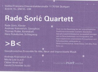 Rade Soric, Klavier Andreas Krennerich, Saxophon Thomas Rotter, Kontrabaß Hans Fickelscher, Schlagzeug